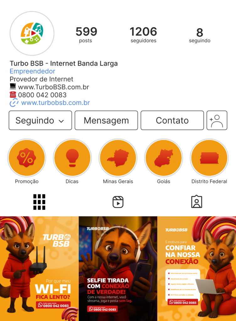 A Turbo BSB é uma empresa de internet e TV à cabo, líder de mercado em diversas cidades de Minas Gerais, entre outras. A Criare Comunicação foi responsável por criar os conteúdos pertinentes as suas redes sociais.